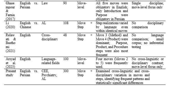 Move-Step Structures in English vs. Persian Research-Article Abstracts Across Three Disciplines (2022-2024)