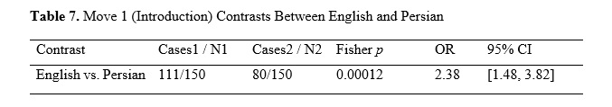 Zand-Vakili, E. and Fard Kashani, A. (2012). The contrastive move analysis: An investigation of Persian and English research articles’ abstract and introduction parts. Mediterranean Journal of Social Sciences, 3 (2), 129–137. https://doi.org/10.5901/mjss.2012.v3n2.129