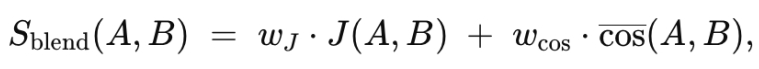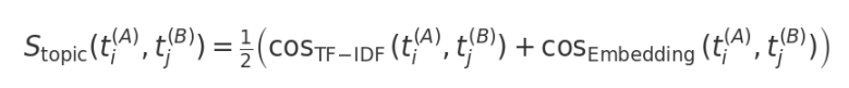 are topics i and j from approaches A and B, cosTF–IDF is a cosine similarity between TF–IDF vectors of the textual profiles, cosEmbedding is a cosine similarity between embedding vectors of the textual profiles. The factor 1/2 indicates equal weighting of the two components.